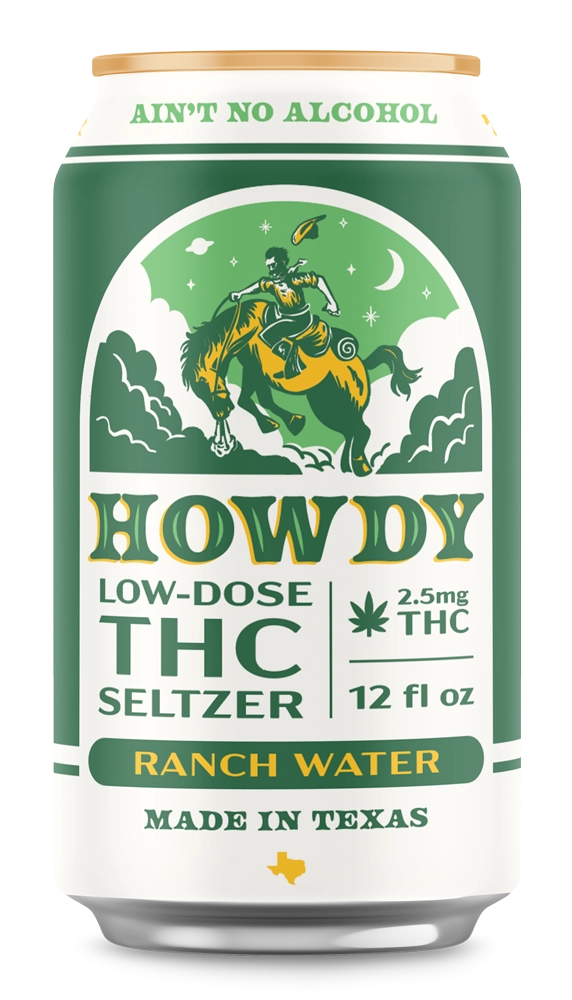 Inspired by the Classic West Texas Refreshment, HOWDY Ranch Water is an instant classic, with lime, bubbles and a low-dose of 2.5mg Hemp-Derived THC. Perfect for those Hot Texas days, Floating the river, Beach Days, Wranglin’ Cattle, and paired with Tacos and fishin’.